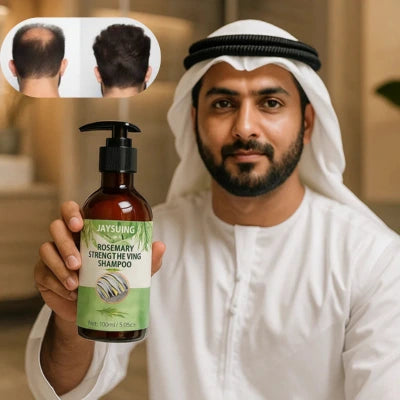""كنت أحس بالحرج من الصلع وخايف أفقد شعري كله، لكن شامبو الروزماري أنقذني! بعد شهرين، شعري صار أكثف وأقوى، والحين أطلع وأنا واثق ومبسوط… فعلاً رجّع لي شبابي!" "